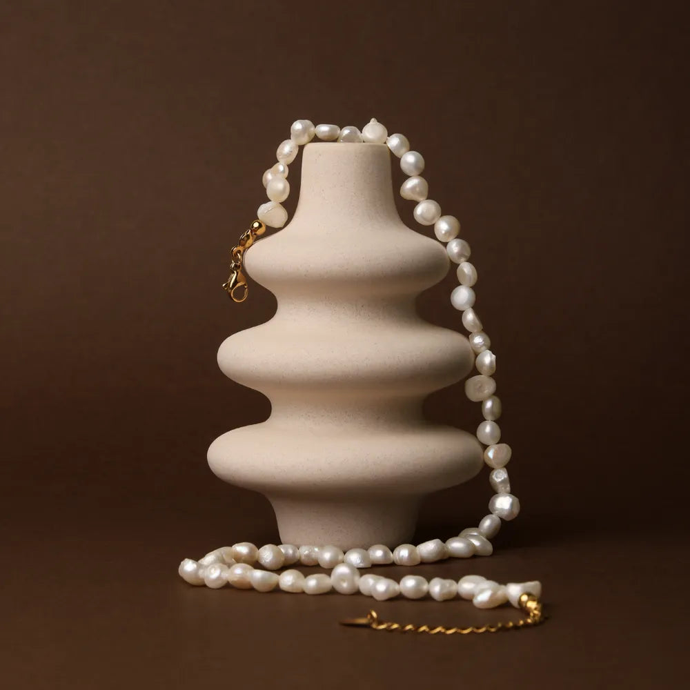 ¡Haz que tu look destaque con nuestro Collar de Perlas Perfectas! Adornado con perlas naturales de agua dulce únicas e irregulares, este collar es el accesorio perfecto tanto para tus días de playa como para tus noches en la ciudad.